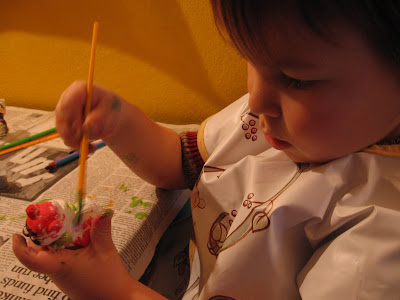 We each did a snowman ornament for next years Christmas tree and then he did 3 little winter animal knick knacks - very colorfully...